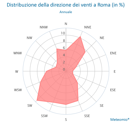 venti che soffiano più frequentemente sulla provincia di Roma provengono